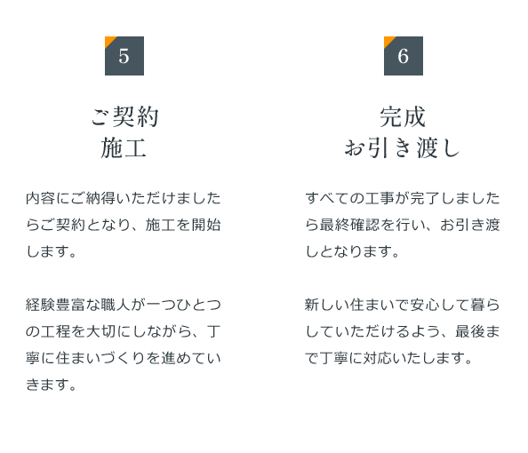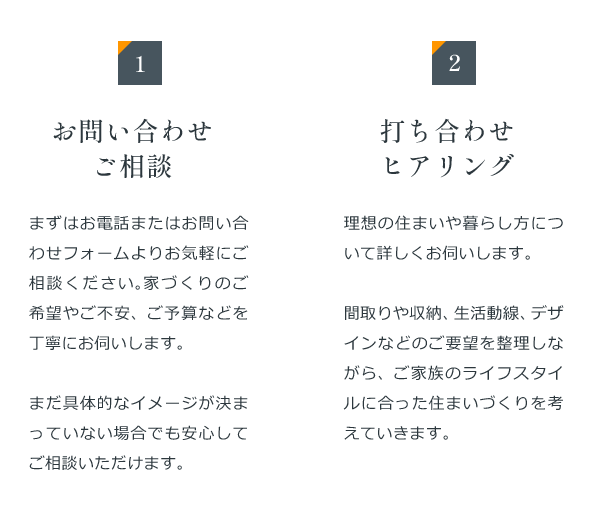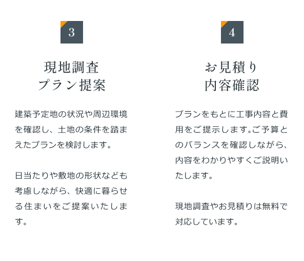 ご相談から施工、完成まで一貫して対応し、お客様に寄り添いながら家づくりを進めていきます。現地調査やお見積もりも無料で承っており、ご希望を丁寧に伺ったうえで最適なプランをご提案します。